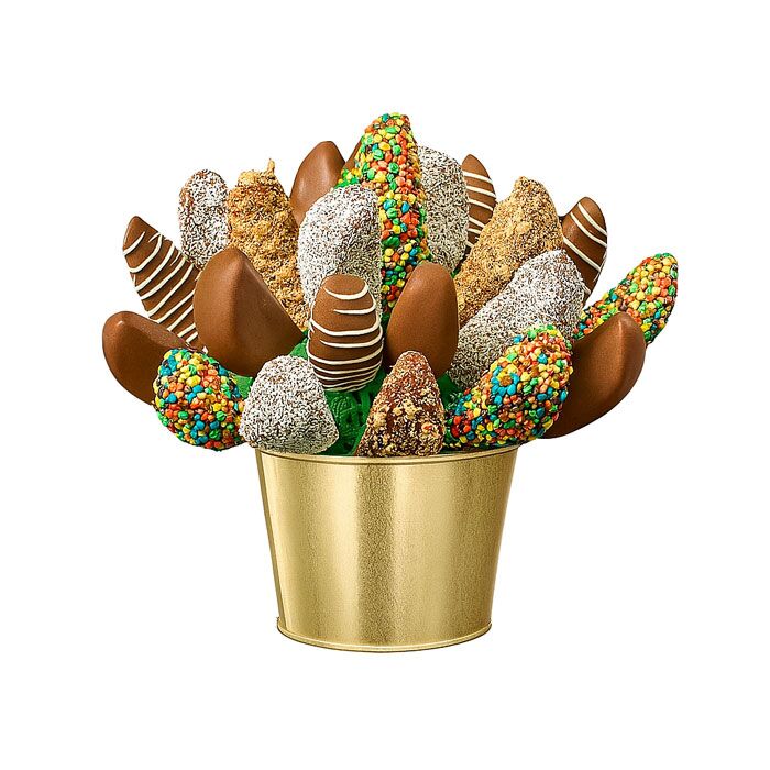 This Bouquet truly is a explosion of tastebud delights, a delicious combination of Granny Smith Apple Wedges dipped in a mixture of gourmet chocolate and mix toppings.