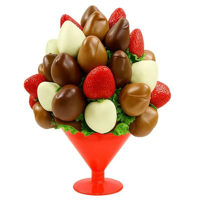 Send A Sweet Surprise with this Delicious Edible Arrangement consisting of fresh fruits and Gourmet Chocolate covered Strawberries.