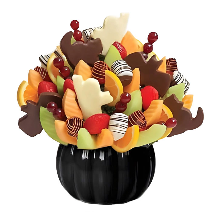 PLEASE NOTE DUE TO DEMAND AND SUPPLIER ISSUES WE MAY NEED TO SUBSTITUTE SOME FRUITS WHICH MAY CHANGE THE DESIGN. REST ASSURE THE FRUIT BOUQUET WILL STILL LOOK AND TASTE AMAZING. YOU WILL MOST LIKELY HAVE EXTRA DIPPED STRAWBERRIES ADDED INTO THE DESIGN.