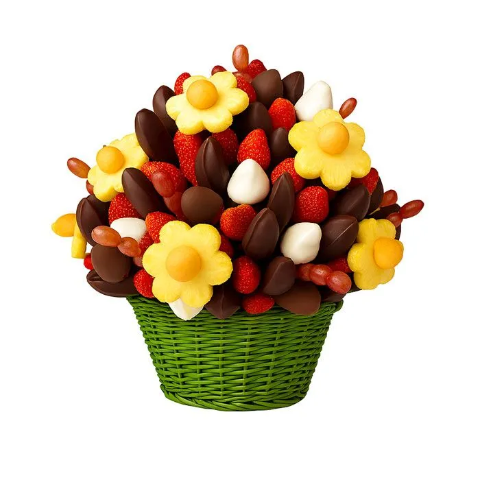 A delicious combination of Strawberries, Pineapple, Grapes , Cantaloupe melon and gourmet chocolate. The perfect treat for all to share!